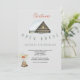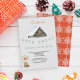 Vacances d'hiver / Noël roux et gris invitation à la maison ouverte dans le style typographique moderne avec une petite maison de chalet aquarelle, une cloche à anneau, des baies sèches, et des flocons de neige stylisés motif au verso. ++++++++++++ Personnalisez-le avec vos détails ! ++++++++ Convient pour les fêtes d'hiver saisonnières - maison ouverte / Noël / fête de vacances.