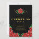 Partagez la joie et l'invitation de vos amis et de vos proches à votre fête de Noël avec cet élégant noir avec le texte or poinsettia invitation à la fête de Noël fleurie.