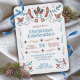 Scandinavie Art populaire Noël Invitations. Oiseaux dessinés à la main, éléments floraux aux branches décoratives aux couleurs de rouge muet, bleu et faux or sur un arrière - plan de lin faux antique. Parfait pour les vacances de Noël !