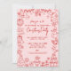 Invités Invitations à votre fête de vacances avec cette invitation de Noël mignonne et festive. Le design est composé d'un arrière - plan rose vif aux polices rouges et d'illustrations d'art dessinées à la main sur des lignes de gribouillis tout autour : Père Noël, bonhomme de neige, bas, verdure, ornements et autres icônes de vacances classiques, mêlées de cocktails festifs et même d'une tour de champagne pour une ambiance festive et animée. Le centre garde les choses simples avec un script manuscrit associé à des polices propres, lui donnant l'apparence d'une note manuscrite douce. Parfait pour tout type de célébration de vacances, d'une réunion de famille à un travail ou une soirée de cocktail festive, le texte est entièrement personnalisable pour correspondre à votre événement. Disponible sous forme d'invitation imprimée ou d'évènement numérique téléchargeable, vous pouvez l'envoyer par courrier électronique, par courrier électronique ou par impression locale.
