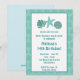 Cette amusante invitation à la fête sur la plage présente une scène de plage avec des coquillages et un texte sur mesure avec des étoiles de mer.