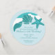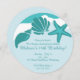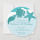 Cette amusante invitation à la fête sur la plage présente une scène de surf de plage avec des coquillages de mer et un texte d'étoiles de mer et personnalisable.