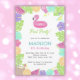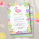Feuilles et fleurs tropicales, avec des fruits et un char flamand mignon pour la parfaite fête de piscine pour filles !