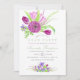 Cartes d'invitation à la fête de remise de diplômes printanière à l'aquarelle botanique avec des accents ultra violet, prune et vert sauge à la mode. Les fleurs représentées sont les renoncules, les tulipes, les violettes et les crocus avec une forte influence chinoise impressionniste.
