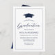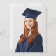 Cette invitation simple et classique pour une fête de remise de diplômes présente une casquette silhouettée de couleur bleu marine foncé sur fond blanc. Le mot « Remise de diplômes » apparaît dans une écriture manuscrite en bleu marine. Personnalisez le texte sans empattement avec le nom du diplômé et les détails de la fête à l'intérieur d'une fine bordure encadrante en bleu marine. Remplacez l'image exemple au dos par une photo verticale de votre diplômé.