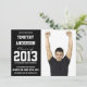 Voici un invitation simple d'obtention du diplôme conçu pour votre étudiant de troisième cycle masculin sportif. Arrière - plan noir audacieux avec le lettrage blanc de police de style de jersey de superstar. Côte à côte la disposition ainsi votre photo d'orientation de portrait est un demi-, et l'information de cérémonie de partie appropriée ou de diplômé est de l'autre.