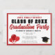Cette invitation personnalisée de fête de fin d'études en rouge mignonne comporte le nom de votre lycée ou université pour la promotion 2026. Personnalisez-la avec le nom du diplômé sous le script manuscrit gras et chic pour une invitation de célébration de fin d'études personnalisée qui est décorée de ballons et d'une casquette de diplômé. Ajoutez une photographie complète au verso.