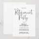 Cette invitation à une fête de retraite avec un script élégant noir et blanc peut être personnalisée avec toutes les informations de votre célébration spéciale. Conçu par Thisisnotme©