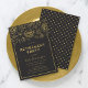 Carton d'invitation de fête de retraite à motif floral élégant avec motif floral et bordure en faux doré sur fond gris foncé au recto. L'invitation présente un motif à pois en faux doré sur fond gris foncé au verso.