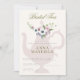 Une élégante théière, dessinée à la main, ainsi qu'une couronne d'aquarelle fleurie avec des anémones et d'autres verdure, décorent cette élégante invitation à la fête du thé à thème floral qui présente également de la calligraphie moderne. Luxueux mais simple, classique mais chic, moderne mais intemporel.