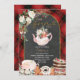 ÉDITABLE Heure Quatre Tea Party Noël Plaid 4e anniversaire Invitation Elégante Chalkboard Blanc Floral hiver Noël Anniversaire Tea Party Rouge & Noir Plaid Teapot Gâteaux Noël Invitation