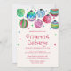 Cette carte d'invitation à l'échange d'ornement de vacances est parfaite pour un événement festif de vacances. L'aquarelle présente des baubles de Noël colorés avec des confettis rouge vert et bleu.