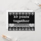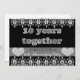 Créez vos propres invitations personnalisées et chic pour votre dixième anniversaire de mariage sur fond noir - Sur le devant, un texte en 3D qui ressemble à du métal brossé gris, à l'étain ou à l'aluminium indique "10 ans ensemble". Sur une bande translucide noire, en lettres ombrées, il est écrit "Vous êtes invité à une fête d'anniversaire". De faux cœurs en pierres précieuses en diamant ornent chaque extrémité. Les bordures supérieure et inférieure sont ornées d'une bordure en dentelle à motifs de diamants. Au verso, des lettres en 3D noires pour vos informations de fête d'anniversaire de mariage personnalisées et modernes. Personnalisez comme vous le souhaitez. Visitez notre boutique Zazzle.com/angela65 pour plus de fournitures pour fête de dixième anniversaire de mariage.