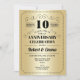 Invitation à la fête du 10ème anniversaire de mariage. Carte d'invitation dorée et noire. Parfait pour une célébration élégante. Peut être personnalisé pour n'importe quelle année.