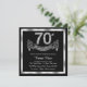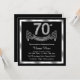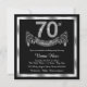 Invitation élégante pour un 70ème anniversaire avec des chiffres en diamant et une bannière sur fond argent et noir. Cette belle invitation pour un 70ème anniversaire argent et noir est facilement personnalisable pour votre événement. Vous pouvez changer la couleur de fond. Ce design saisissant convient aussi bien pour un homme que pour une femme. Il s'agit d'un design imprimé sans vrais diamants, argent, paillettes, etc.