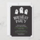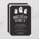 Invitation Éffrayante à la fête d'anniversaire avec 3 fantômes blancs sympathiques. Vous pouvez également utiliser cette invitation pour une soirée costumée et des soirées à thème effrayantes.