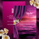 Invitation à la douche nuptiale originale avec des roses à papillons sur un rideau violet donnant sur une scène océanique imaginaire. Au verso se trouve un modèle de code QR pour faciliter la visite de votre site Web et de votre RSVP ainsi que la consultation du registre.