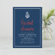 Invitation Fête des mariées Ancre de script bleu et rouge