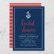 Élégante invitation Nautique Douche nuptiale avec une ancre et les mots "douche nuptiale" dans un script rouge élégant contre un arrière - plan bleu avec une bordure blanche. La carte a un motif à rayures blanches contre un arrière - plan rouge à l'arrière. Consultez d'autres éléments mariages ici https://www.zazzle.com/rosewoodandcitrus/gifts?cg=196540141241316965&rf=238364477188679314 Personnalisez-le en remplaçant le texte de l'espace réservé. Pour plus d'options comme changer la police et sa taille/couleur ou l'espacement entre les lettres cliquez sur le bouton "Personnaliser". *Veuillez noter que le filigrane Zazzle qui apparaît dans l'aperçu du zoom n'apparaîtra PAS sur le produit imprimé final © Rosewood et Citrus