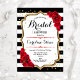 Fête des mariées - Black White Stripes Gold Red Roses Design floral élégant avec de l'or de parties scintillant imitation. Caractéristiques police de script, rayures noir et blanc et roses rouges. Parfait pour une Fête des mariées design. Message-moi si vous avez besoin d'une personnalisation plus poussée.