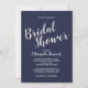 Script moderne Marine Blue Bridal Shower Invitation avec titre en blanc police de caractères modernes avec détails en blanc sans serif police moderne sur arrière - plan bleu marine.