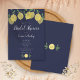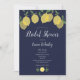 Avec des citrons et de la verdure sur un arrière - plan bleu marine, cette invitation à la douche chic moderne nuptiale ou en couple peut être personnalisée avec vos informations spéciales événement. L'inverse a des initiales monographiques. Conçu par Thisisnotme©