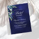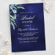 Une invitation à la Fête des mariées moderne, élégante et glamour. Arrière - plan bleu marine, décoré de verdure. La couleur bleue est inégale. Personnalisez et ajoutez un nom et des détails du parti.