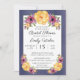 Romantique, irisé bleu marine et violet violet violet invitation à la douche nuptiale couleur jaune et violet fleuri. Le dos de cette carte est un violet irisé violet violet.