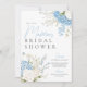 Blue hydrangeas invitation nuptiale douche. Informations sur le registre imprimées au verso de l'invitation.