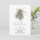 Célébrez la future mariée avec cette invitation à la douche nuptiale feuillue d'hiver rustique minimaliste avec un arrangement floral aquarelle de feuilles de pins, de baies rouges et de verdure d'eucalyptus. Avec élégante calligraphie manuscrite.