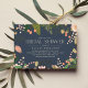 L'invitation à la douche nuptiale d'inspiration nature chic comporte une bordure de rose pâle et des fleurs de pêche avec des feuilles verts et des plantes. Personnalisez avec votre douche nuptiale et les détails de registre en lettrage blanc élégant sur un arrière - plan bleu rose riche.