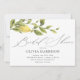 Invitation à la douche nuptiale à thème citron avec des citrons d'aquarelle sur une branche de verts. Invitation à une ambiance vintage. Customisez avec vos informations pour que la mariée soit mariée.