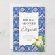 Composé de typographie serif et cursive. Le tout dans un décor aquarelle de tuiles espagnoles méditerranéennes bleues et blanches avec feuilles de feuillage verdoyant, citrons et plantes florales sauvages. Il est conçu par White Paper Birch Co., exclusif pour Zazzle. Disponible ici : http://www.zazzle.com/store/whitepaperbirch