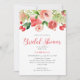 Une jolie invitation pour votre douche nuptiale est faite d'une bordure d'eau de fleurs, de fruits et de verdure dans les tons rose et vert. Personnalisez tous les détails importants tels que le nom de la mariée, la date de la douche, l'emplacement et les informations d'enregistrement. Parfait pour une douche inspirée du jardin.