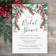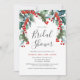 Cette invitation festive moderne à la douche nuptiale aquarelle est un choix parfait pour les douches nuptiales pendant la saison des fêtes. Il présente des branches saintes et des baies en rouge, vert et bleu-vert. Modifiez l'exemple de texte avec les détails de votre événement.
