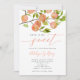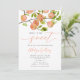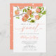 Carte d'invitation à la douche nuptiale à thème pêche rustique illustrant l'illustration du fruit de jardin sur une branche d'arbre. Parfait pour une fête en été. Le texte dit "l'amour est si doux."