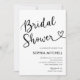 L'invitation minimaliste de la douche nuptiale comprend une calligraphie de script moderne avec un coeur.