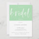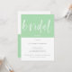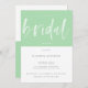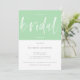 Invitation minimaliste moderne de douche nuptiale en vert et blanc à la menthe à deux tons avec perdre Brush Calligraphy Script. Customisez facilement ce Modèle d'invitation de Brunch nuptial avec le nom de votre choix et changez le texte pour s'adapter à votre événement comme un Brunch nuptial, Fête des mariées, déjeuner nuptial, etc. Une invitation Wedding shower très polyvalente et moderne avec un fond vert menthe et blanc de bloc de couleur (la couleur peut être changée si vous voulez!).