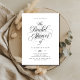 Imaginez l'excitation de célébrer quelqu'un de si spécial. Avec son élégante calligraphie et son charme intemporel, cette invitation à la douche nuptiale en noir et blanc se présente comme un câlin feutré enveloppé de style. Ce n'est pas seulement un invitation, c'est le début de son voyage vers l'éternité. Faisons en sorte que ça soit inoubliable.