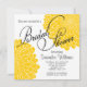 Célébrez la future mariée grâce à cette Invitation Carré de douche nuptiale sur mesure, qui présente un graphique chrysanthème jaune vif. Ce design moderne, fantaisiste et élégant est parfait pour donner une tonalité joyeuse et estivale à votre événement de douche nuptiale. Facilement personnalisable avec vos détails, cette invitation ajoute une touche personnelle et attrayante à votre célébration. Une touche moderne est ajoutée avec un code QR personnalisable sur le dos, offrant à vos invités un accès facile à votre site Web mariage ou aux détails de l'événement. Choisissez entre des cartes magnifiquement imprimées ou un téléchargement numérique instantané pour un partage sans effort.