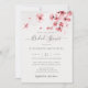 Une élégante invitation à la douche à nuptiale florale moderne avec des fleurs de cerisiers couleur rose vif et de la calligraphie moderne sur une texture de papier fait à la main.