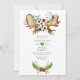 Invitation à la douche nuptiale en bois sauvage avec bouquets d'aquarelle peints à la main avec baies de forêt - bleuet, mûres et sprigs, cônes de pins, fougères, plumes et cornes d'orignaux.