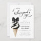 Célébrez la future mariée avec cette invitation à la douche nuptiale chic "She’s Been Scooped Up!" avec un cône de crème glacée moderne noir et blanc surmonté d’un élégant ruban noir. L'aquarelle se marie à une typographie décontractée et élégante pour un look frais et sophistiqué, parfait pour une fête de la mariée d'été ou un brunch et un événement bubbly amusant. Le détail du cône gaufre et la palette minimaliste apportent une touche tendance aux mariées modernes à la recherche d'un thème unique et ludique.
