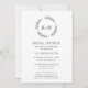 Carte d'invitation Monogramme de couronne de feuille blanche et noire pour douche nuptiale. Célébrez votre journée spéciale avec cette belle et élégante carte de faire-part de mariage pour embellir votre occasion spéciale. Tous les textes sont pré-arrangés pour que vous personnalisiez facilement et rapidement avec vos propres détails.