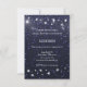 Créez un invitation unique tout seul avec une invitation à la douche nuptiale Starry Night. Le design de l'invitation présente un ciel nocturne orné d'étoiles blanches. Personnalisez avec les noms du marié et de la mariée avec les détails de la douche de la mariée. Papier à lettres mariage supplémentaire disponible avec cette conception aussi.