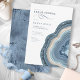 Tous les designs mariages ne sont pas égaux. L'agencement asymétrique des pièces de cet ensemble mariage frappant prouve que ce n'est pas une mauvaise chose ! Des bandes de couleur ondulées dans les tons bleu poussiéreux et beige sablonneux avec un centre de cristal scintillant forment un accent géode/agate sur la plupart des pièces de l'ensemble. L'invitation "Fête des mariées" mariage présentée ici comprend les informations ci-dessus ainsi qu'un modèle pour ajouter les détails de l'événement et les informations RSVP pour vos invités. L'inverse a un arrière - plan abstrait de coordination qui rappelle la pierre veinée de parties scintillant. Recherchez ID647 pour voir toutes les pièces de coordination de cet ensemble.