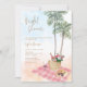 Cette amusante invitation à la douche nuptiale comprend une belle scène de pique-nique de plage aquarelle avec des palmiers, une couverture en plaid rose et un panier de pique-nique, parfait pour une fête de pique-nique de plage. Les couleurs douces et les détails complexes en font un complément étonnant à tout événement de douche nuptiale. Préparez-vous à vous amuser au soleil avec la future mariée !