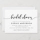 Élégante invitation à la douche nuptiale avec les mots "Fête des mariées" dans un script de relaxation cursive en noir contre un arrière - plan blanc. La carte est recouverte d'un côté noir avec des lignes blanches qui se chevauchent. Personnalisez-le en remplaçant le texte de l'espace réservé. Pour plus d'options comme changer la police et sa taille/couleur ou l'espacement entre les lettres cliquez sur le bouton "Personnaliser". *Veuillez noter que le filigrane Zazzle qui apparaît dans l'aperçu du zoom n'apparaîtra PAS sur le produit imprimé final. © Bois de rose et agrumes