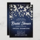 Une invitation à la douche nuptiale simple, moderne, élégante et chic avec un thème denim et diamant qui combine un autre thème tendance : papillons, pierres blanches et strass (c'est un effet numérique). Il présente un arrière - plan denim et la typographie en blanc, ainsi que la calligraphie script moderne pour le titre "Fête des mariées". Un design chic "denim et diamants" pour une mariée moderne qui aime le denim !