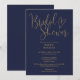 Invitation Fête des mariées de script élégante Blue Gold Mode